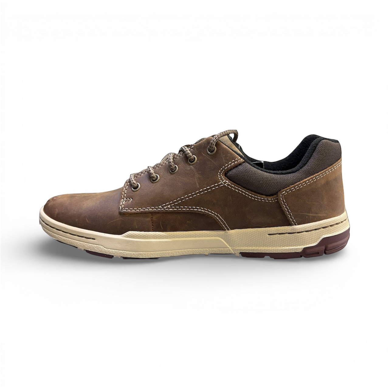 کفش مردانه کولفکس از برند کاترپیلار، رویه چرمی را با کفی لاستیکی بادوام ترکیب میکند. این کفش ورزشی دارای بند، کفی نرم و آستر پارچهای است. مدل P716677 که با برند کاترپیلار تزئین شده است، در رنگ قهوهای تیره عرضه میشود.