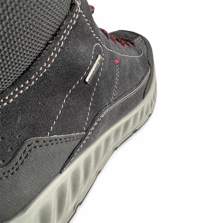 • جنس رویه: این مدل از چرم طبیعی جیر (Suede) با کیفیت پریمیوم ساخته شده است. استفاده از پارچههای برزنتی مقاوم در قسمت مچ پا، انعطافپذیری و راحتی حرکت را افزایش میدهد.